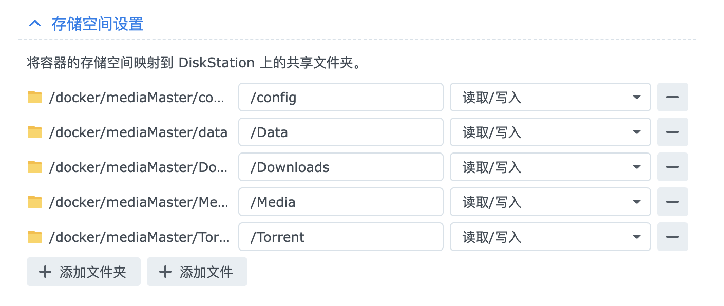 /vol1/1000/Docker/mediamaster:/config #可根据实际进行修改