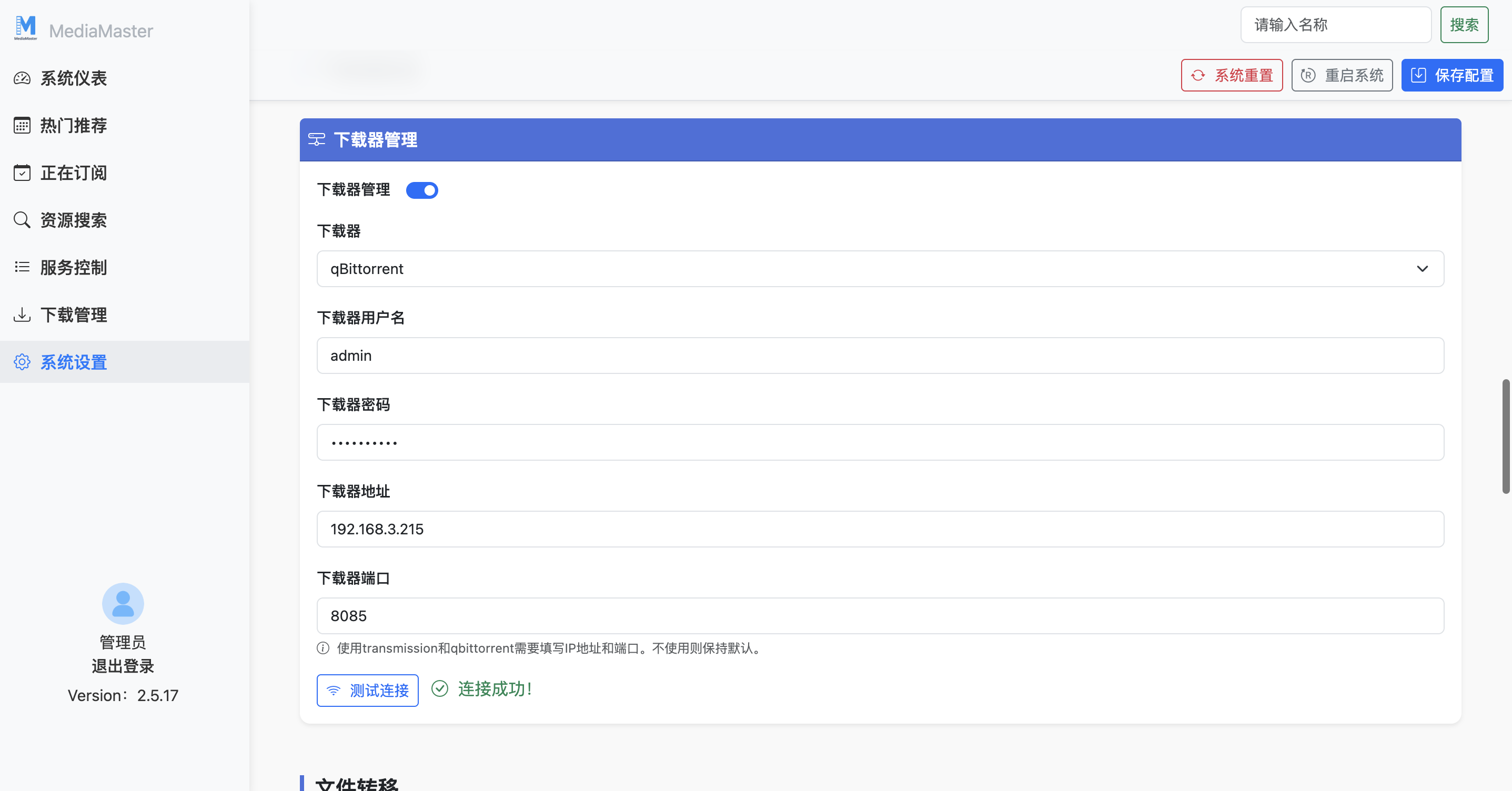 官方文档中提供了带transmission、qbittorrent、迅雷的镜像,根据自己的需求可以增加对应的配置。这里我用的是qbittorrent,下载地址填写内网的地址,填写qbittorrent的端口就可以了,其他配置项保持默认即可。
