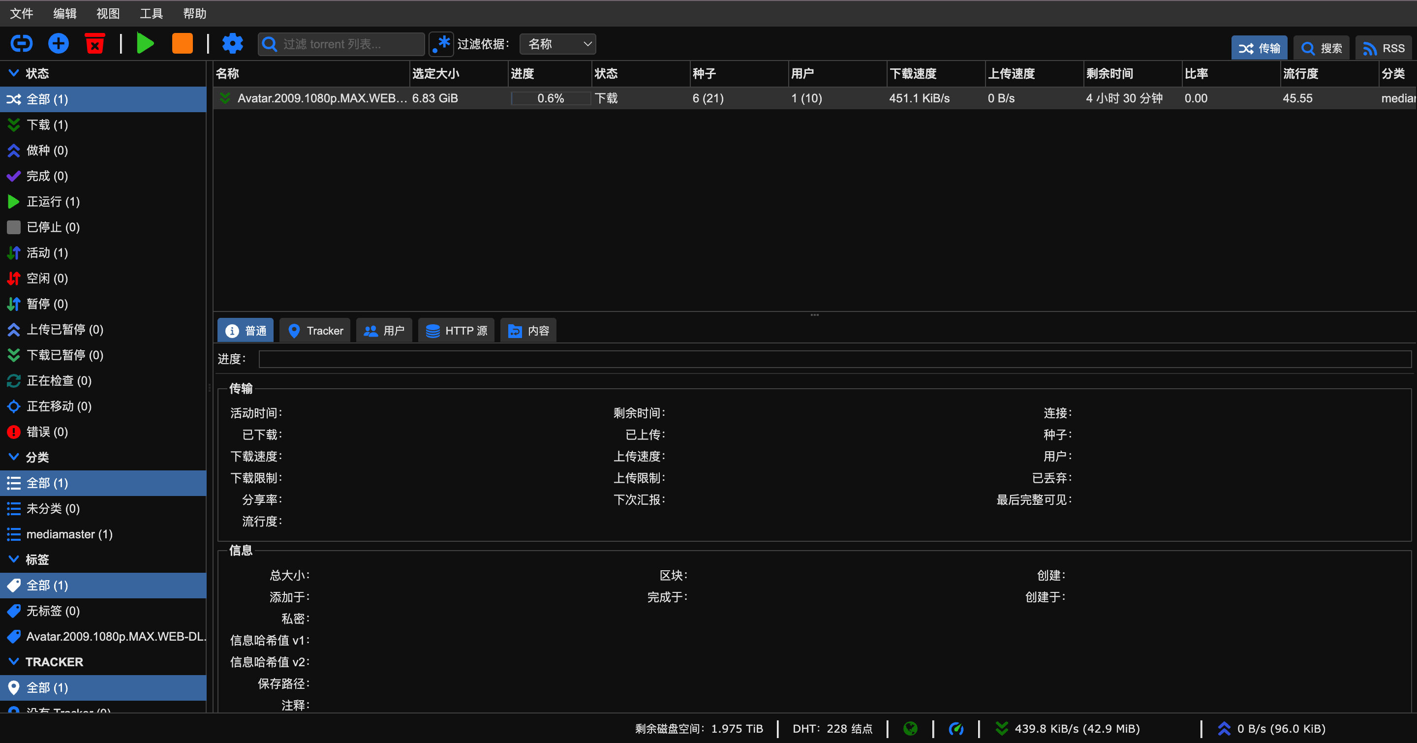 在qbittorrent中也能看到对应的下载任务了