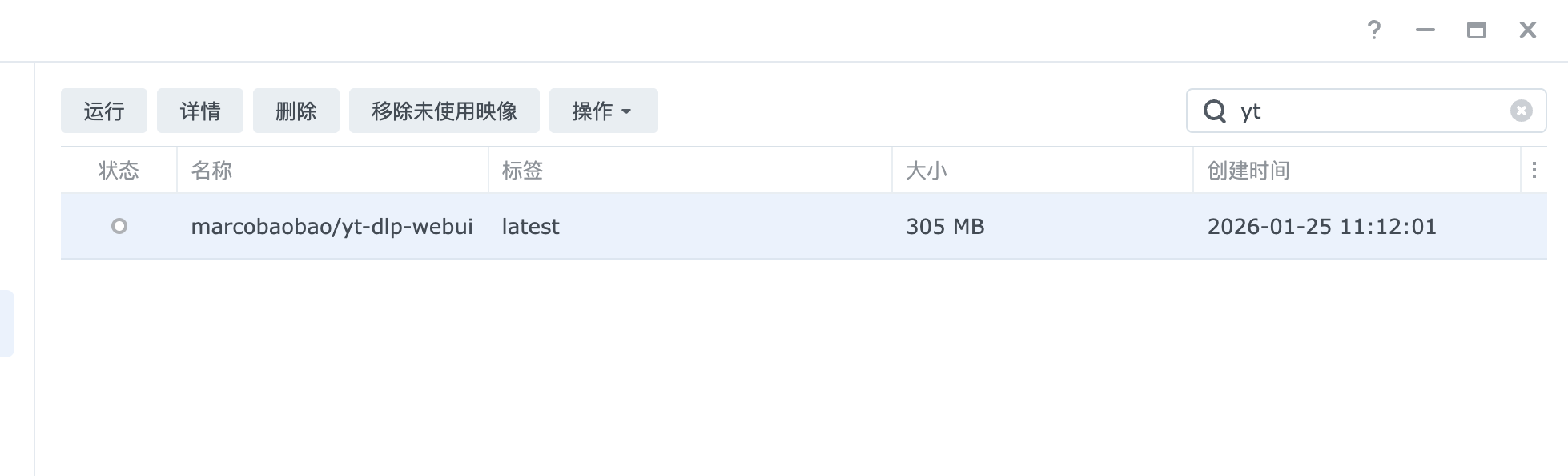 打开群晖的 Docker 应用程序,点击左侧菜单栏中的 “注册表”。在搜索框中输入 “yt-dlp-webui”,此时会出现相关的镜像列表,选择 “marcobaobao/yt-dlp-webui” ,并点击 “下载” 按钮。在弹出的版本选择窗口中,选择 “latest” 版本,这通常代表着最新的稳定版本,然后等待镜像下载完成。