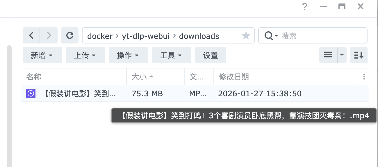 在Nas上对应的downloads目录下也可以看到已经有这个视频了