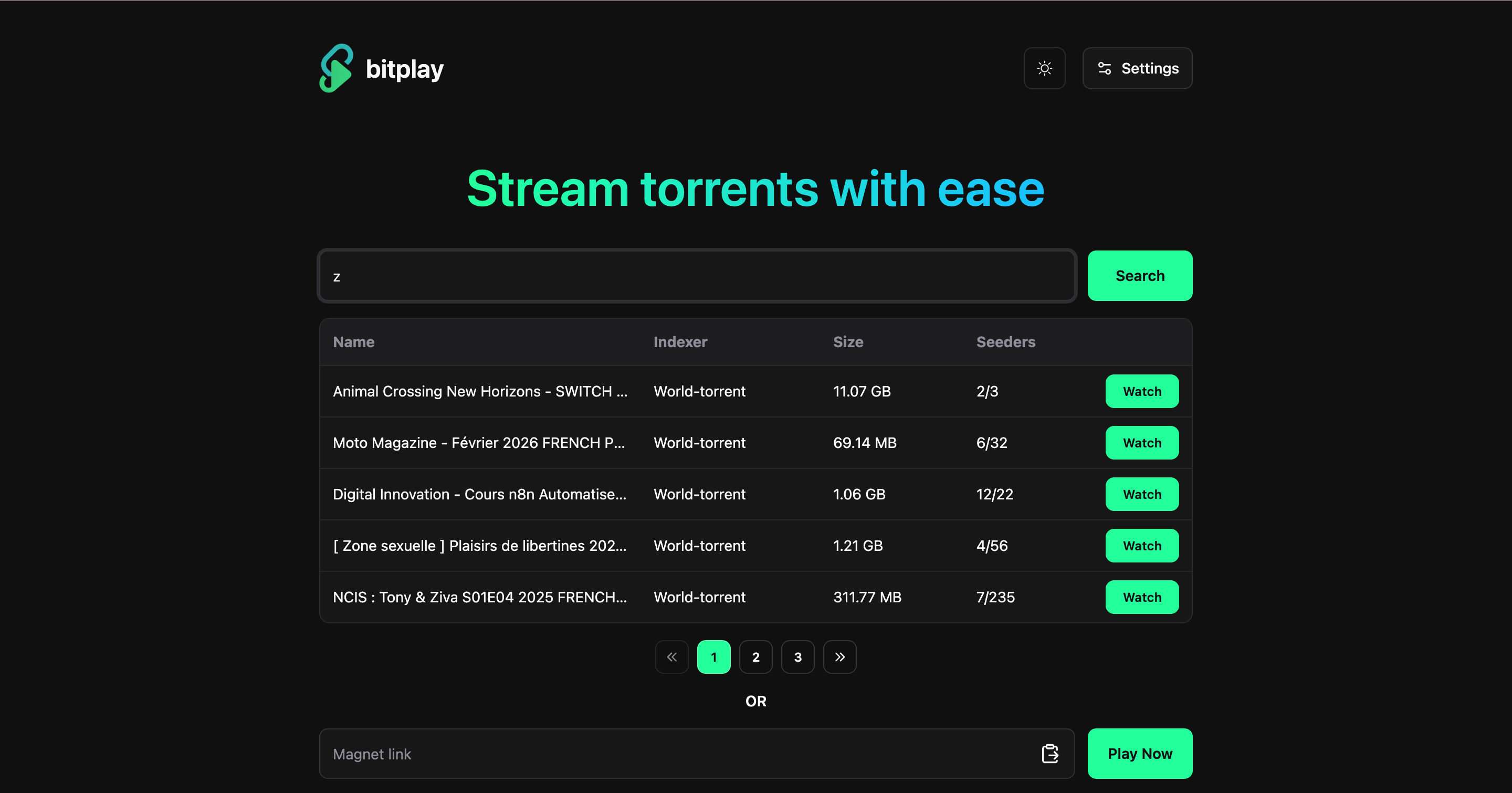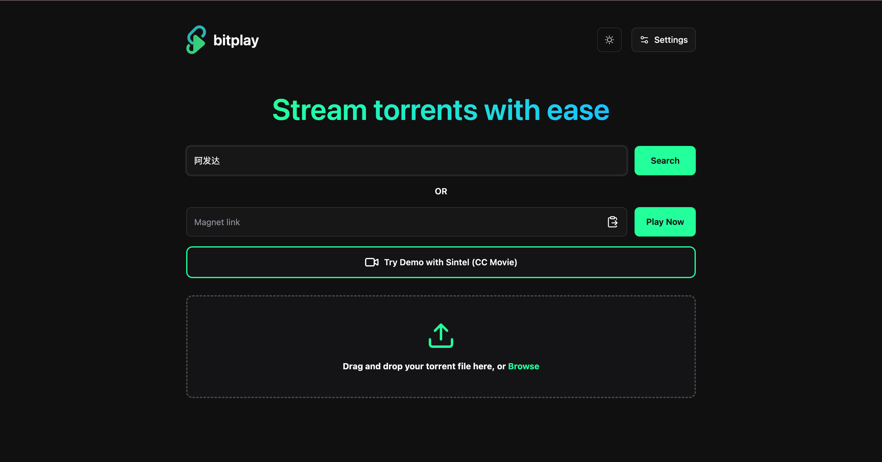 BitPlay 是一款用 Go 语言编写的 Web 应用程序,可让您直接在浏览器中从种子文件串流视频内容。它拥有简洁的 Web 用户界面,支持 SOCKS5 代理,并集成了 Prowlarr 和 Jackett,可实现无缝的种子搜索,轻松在网页浏览器中观看视频种子文件。