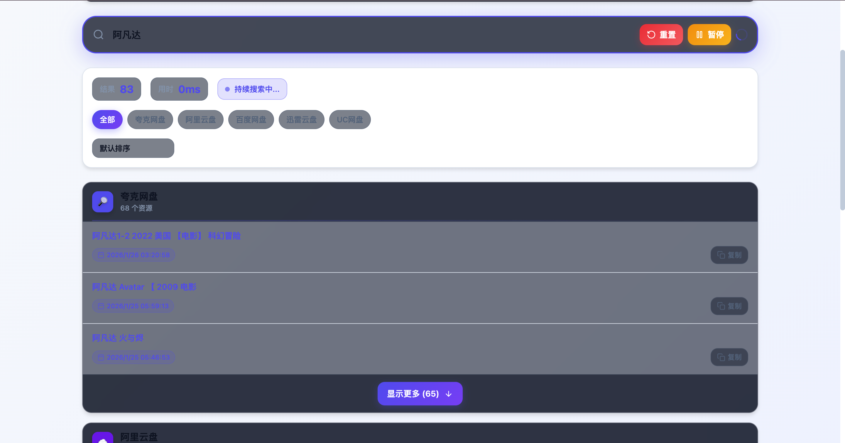 * 多源聚合搜索:一键横跨多个主流网盘搜索引擎。