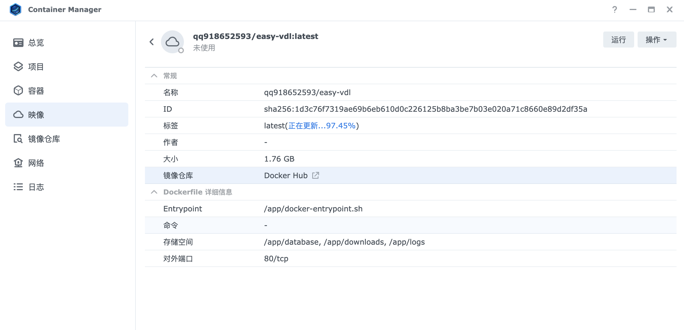 qq918652593/easy-vdl(若拉取慢,可配置镜像加速,见注意事项)。选中镜像,点击