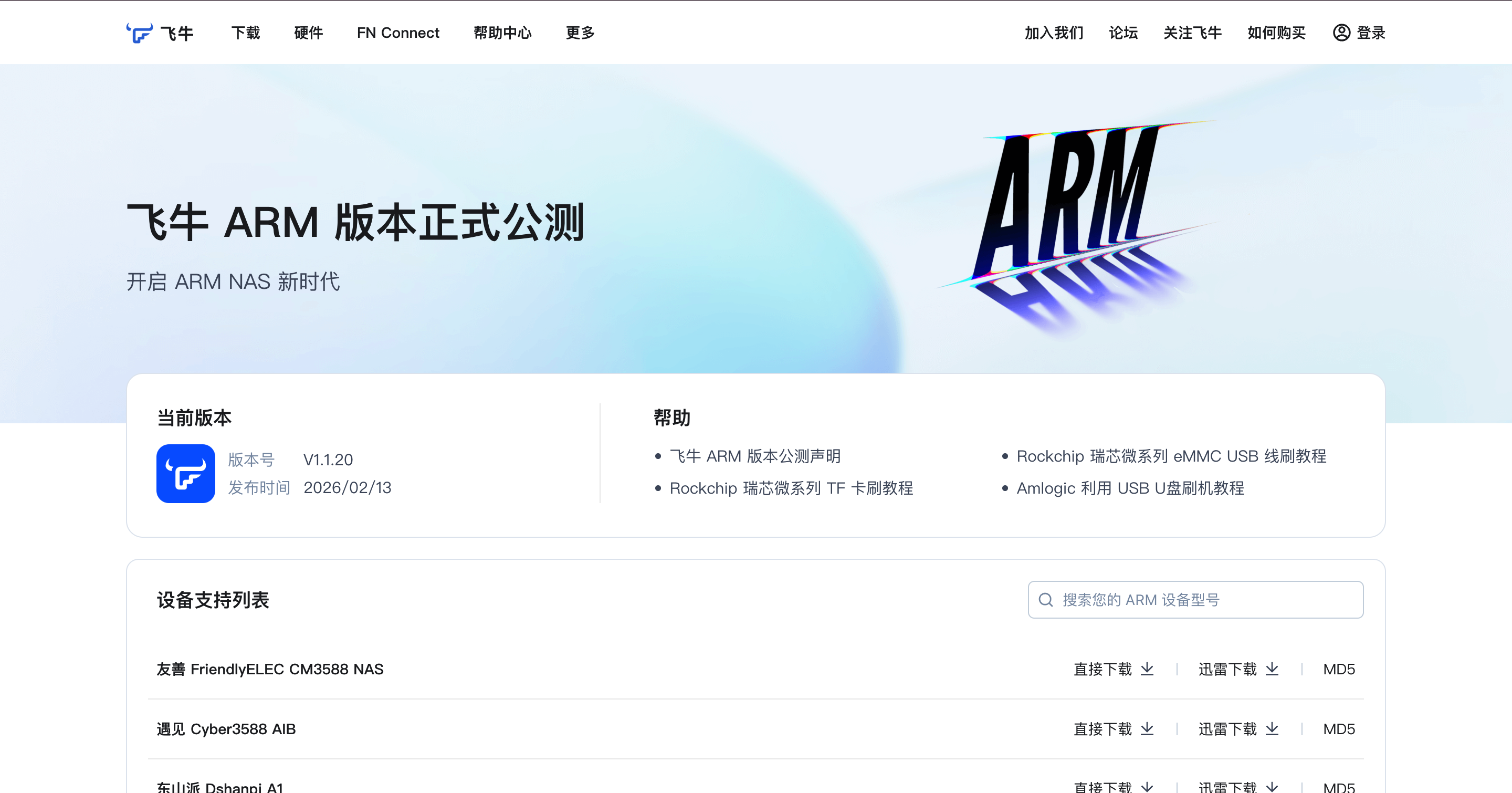 thunder://QUFodHRwOi8vdGh1bmRlci5saXZldXBkYXRlLmZubmFzLmNvbTo4MDgwL3g4Nl82NC90cmltL2Zub3MtMS4xLjI2LTE2NTAuaXNvWlo=飞牛Nas目前也提供了ARM版本的镜像,支持设备还不少