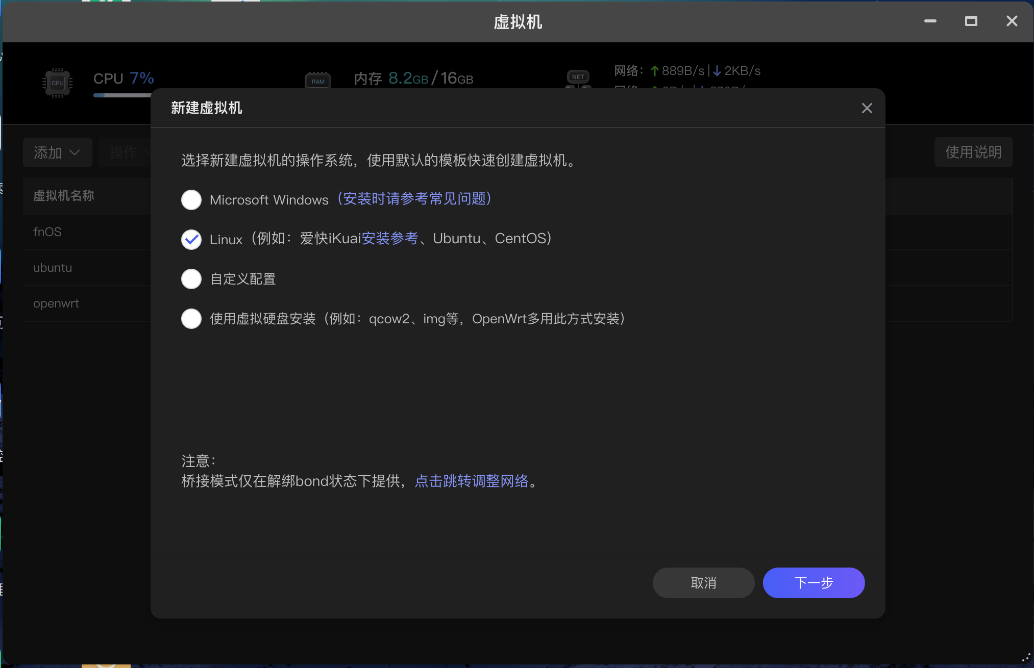 极空间Nas虚拟机安装飞牛Nas