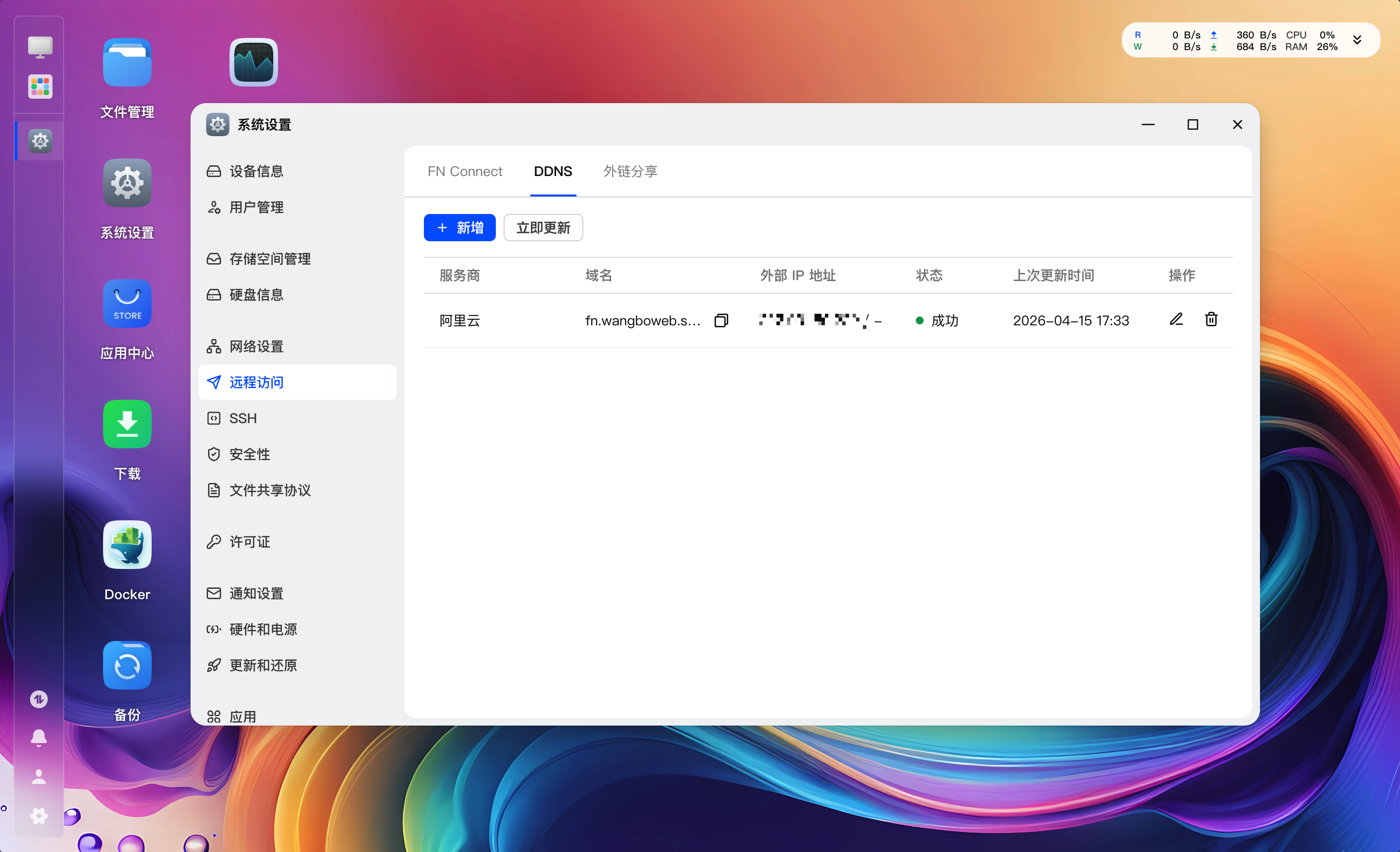 安装完成以后,如果你在内网直接浏览器打开上面的地址即可,如果是外网的话在远程访问添加访问地址,用极空间客户端访问